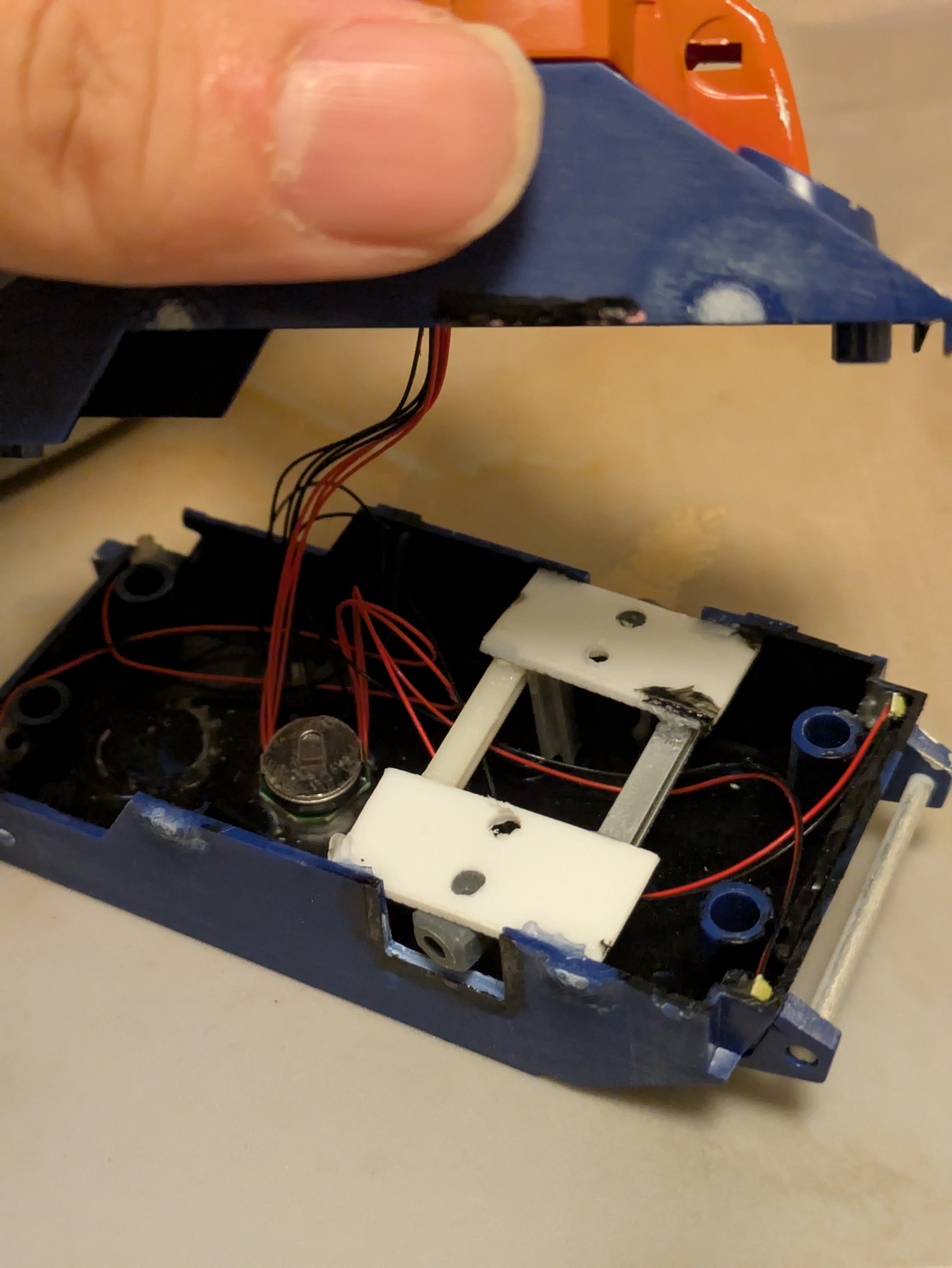 スイッチはどこかって?磁石です。磁石を底面に近づけたら作動します。