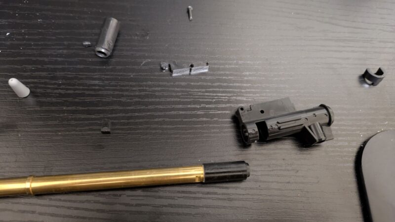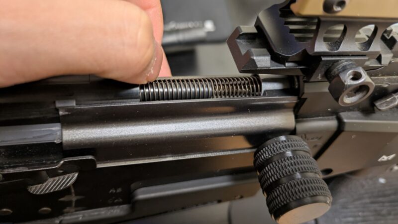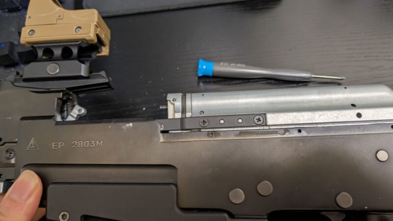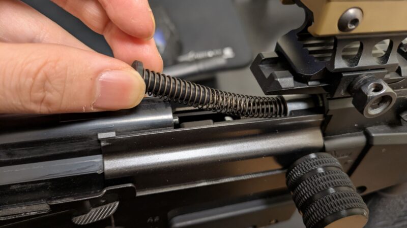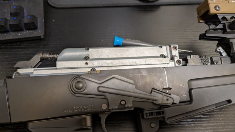 まずはチャージングハンドル周りを分解する必要があります。