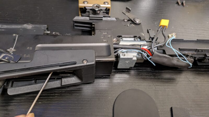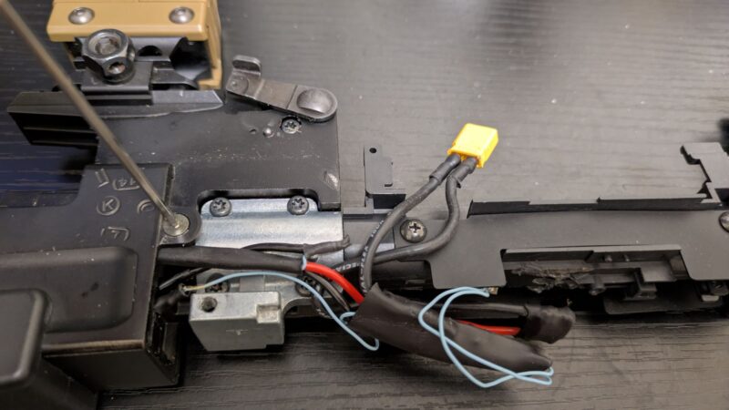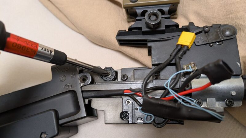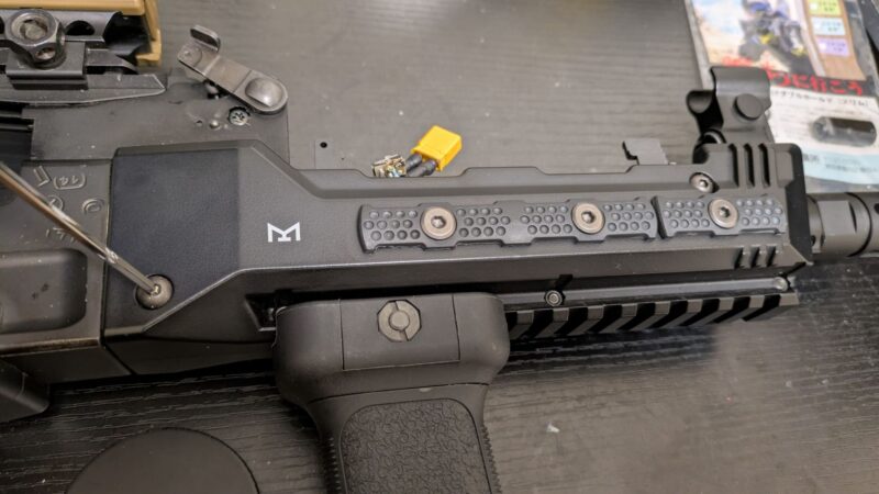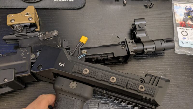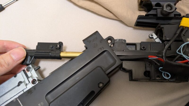 アッパーハンドガードを外したら(アッパーハンドガードはバッテリー交換のときに外すパーツなのでさすがに書かずともわかりますよね?)、